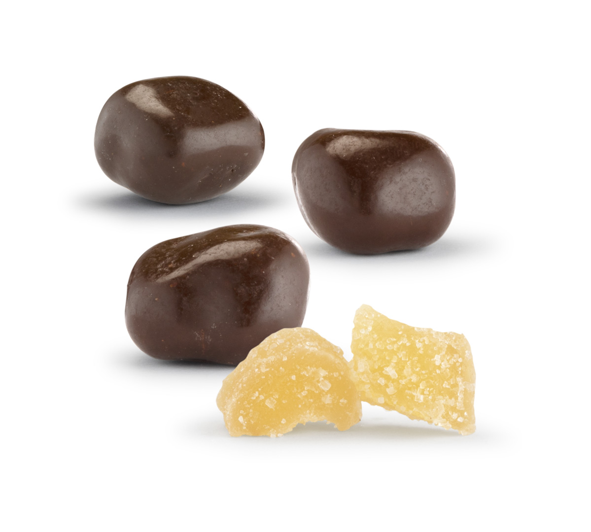 Dragées di Zenzero: deliziosi cubetti di zenzero candito ricoperti di cioccolato fondente in astuccio da 130 g o in sacchetto richiudibile da 200 g.